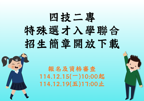 115學年度四技二專特殊選才入學聯合招生簡章公告