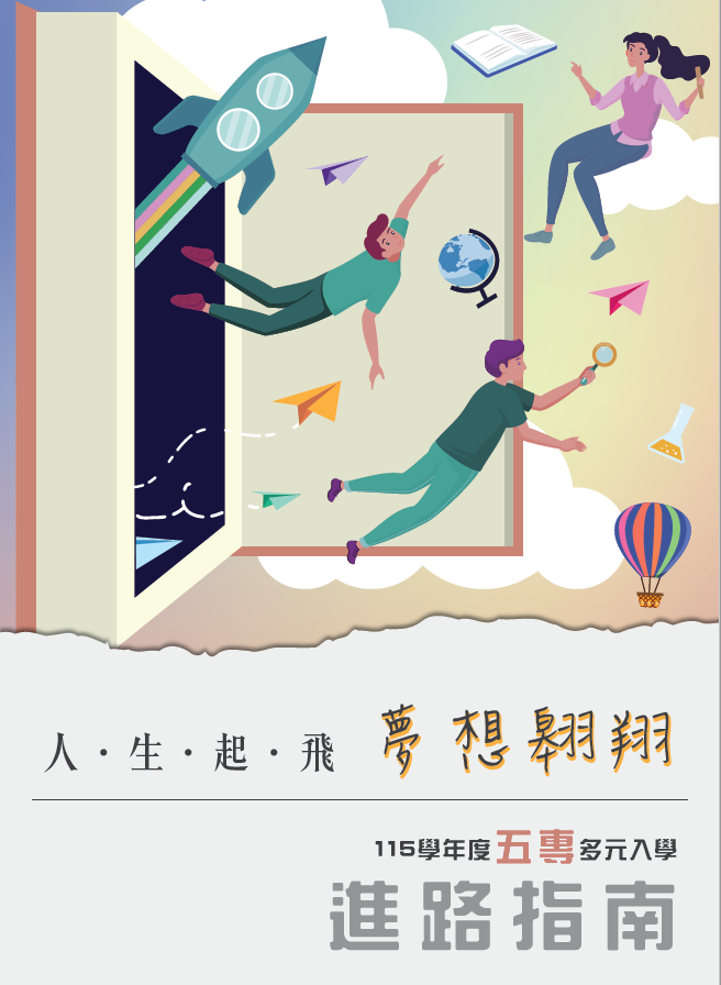 專科學校五年制簡稱五專,招收國中畢業生,修業5年,畢業後可取得副學士學位,為我國培育中級技術人力的重要管道之一。五專徹底落實專業證照制度,幾乎所有科別皆有其對應之專業證照,除了證明學生們的專業能力及提升職場的競爭力外,有許多證照甚至是進入職場必備的入場券,在學期間亦將安排校外實習,因此具多元且彈性的五專學制可提早體驗工作職場、壓力小但更有捷徑的升學進路、快速選擇人生的方向,正適合性向明確、有理想目標的有志學子加入!