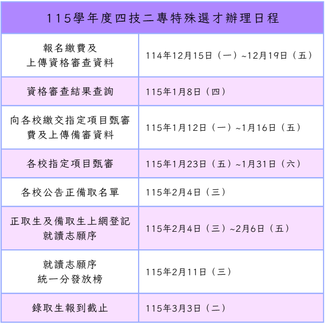 配合教育部推動「資安學研人才培育計畫」,「技職特才及實驗教育組」系名加註資安人才,招收對資安議題有興趣且具特殊專長之學生。如學校未限制1校選填1系,考生可同時選填2個志願。