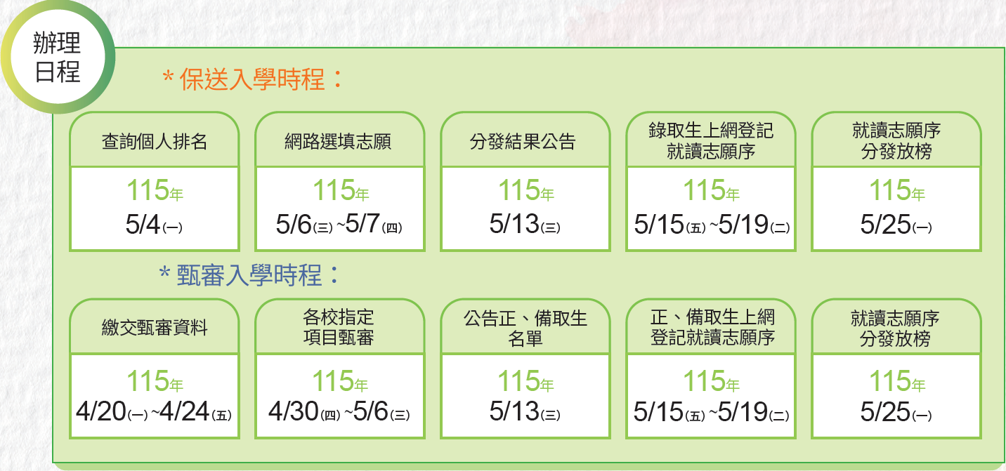 保送入學錄取生,或甄審入學正、備取生,均應上網登記就讀志願序,接受就讀志願序統一分發才可獲得錄取機會。